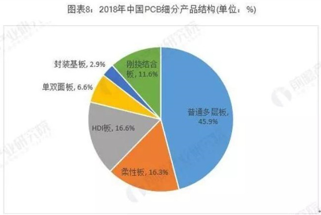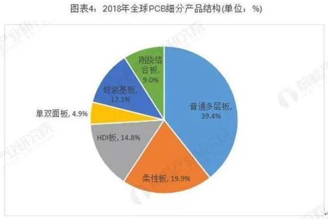 根據Prismark的統計,2018年全球PCB細分產品的市場結構如下: